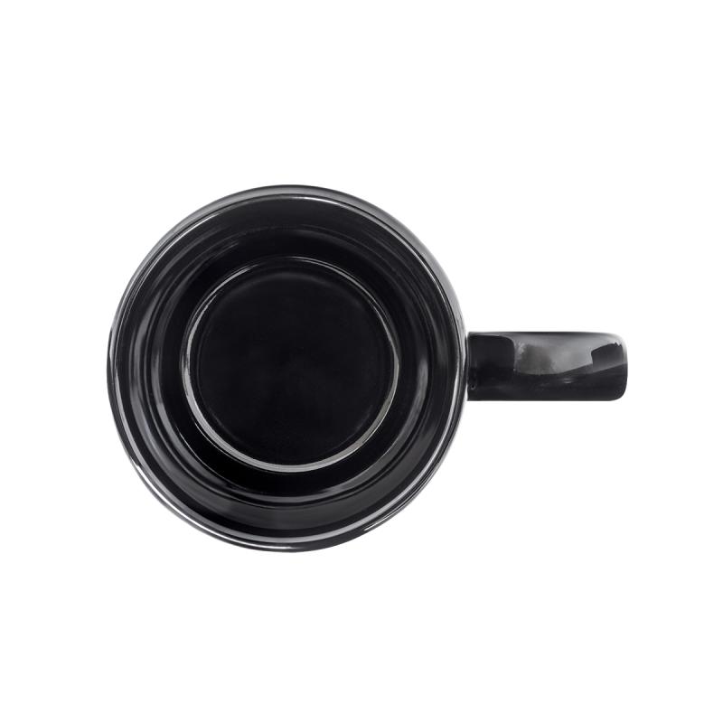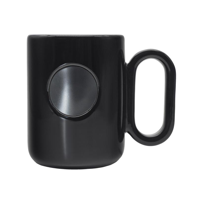 Stylowy kubek ceramiczny o błyszczącej powierzchni, która nadaje mu nowoczesny, elegancki wygląd. Z przodu znajduje się metalowy okrągły element w kolorze grafitowym (gun metal), idealny pod grawer. Ergonomiczny uchwyt zapewnia wygodę użytkowania. Pojemność 480 ml.