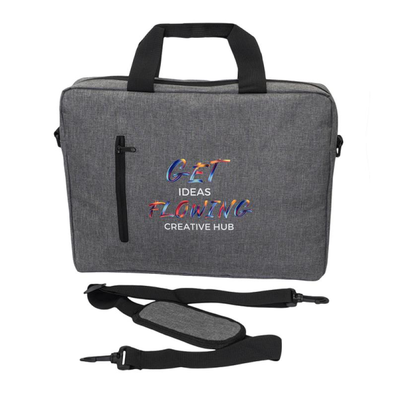Torba na laptop 15" z wewnętrzną przegrodą. Dopinany pasek pozwala nosić torbę na ramieniu. Posiada zewnętrzną, zapinaną kieszonkę. Dodatkowy pasek z tyłu torby pozwala umieścić ją na rączce od walizki.