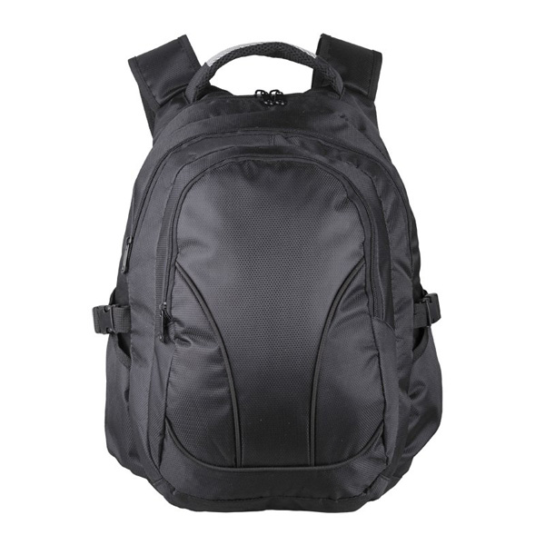 Praktyczny i solidny plecak na laptop wykonany z żakardu. Poza główną kieszenią na laptopa posiada dwie przegródki na dokumenty i przedmioty osobiste. Dodatkowo wyposażony w 2 kieszonki boczne. Spinany paseczkami. Mieści laptop o maksymalnych wymiarach zewnętrznych 30 x 26 x 6 cm. Pojemność 30 litrów.