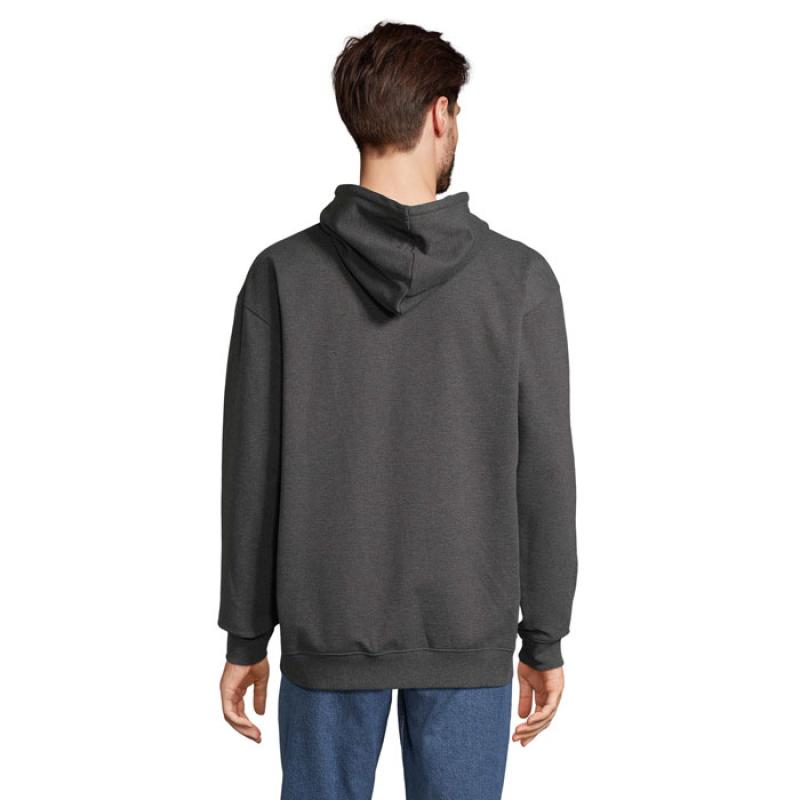 SOL`S CARTER, bluza z kapturem, 80% bawełna - 20% poliester z recyklingu z certyfikatem Grs, wszyte rękawy, cięcie i szycie, ściągacz 1X1 w mankietach i u dołu, kieszeń kangurka, kaptur z podszewką i sznurkiem w tonacji i metalowymi oczkami, zapięcie z przodu na ukryty zamek błyskawiczny, plastikowy zamek błyskawiczny z metalowym ściągaczem w tonacji, półksiężyc z dżerseju i taśma wzmacniająca na karku wewnątrz kołnierza (1) Grey Melange : 73% bawełna / 20% poliester z recyklingu / 7% wiskoza, (2) Charcoal Melange: 60% bawełna / 40% poliester z recyklingu. Informacje na temat dopasowania rozmiarów można znaleźć w tabeli rozmiarów w sekcji dokumentacji produktu.