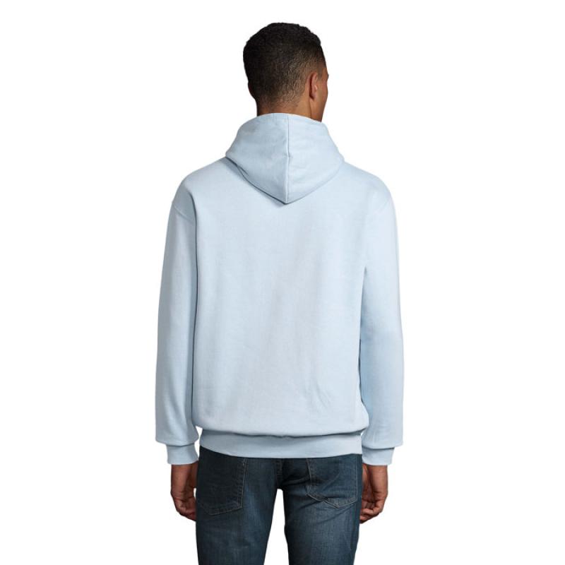 SOL`S CONDOR, bluza unisex z kapturem, 80% bawełna - 20% poliester z recyklingu, certyfikat Grs. Szczotkowany polar 280 z wszytymi rękawami, prążkowane mankiety, kołnierz i dół 1X1. Kieszeń typu kangurka, podszyty kaptur ze sznurkiem i metalowymi oczkami. Informacje na temat dopasowania rozmiarów można znaleźć w tabeli rozmiarów w sekcji dokumentacji produktu.