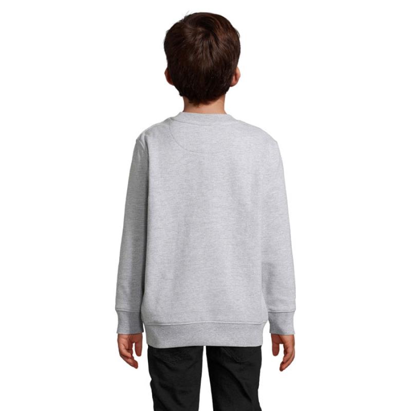 SOL`S COLUMBIA KIDS, t 80% bawełna - 20% poliester z recyklingu z certyfikatem Grs Okrągły dekolt, wszyte rękawy, cięcie i szycie, prążkowane mankiety, szyja i dół 1X1, półksiężyc z dżerseju i taśma na karku wewnątrz kołnierza, luźny krój (1) Szary melanż: 73% bawełna / 20% poliester z recyklingu / 7% wiskoza. Informacje na temat dopasowania rozmiarów można znaleźć w tabeli rozmiarów w sekcji dokumentacji produktu.