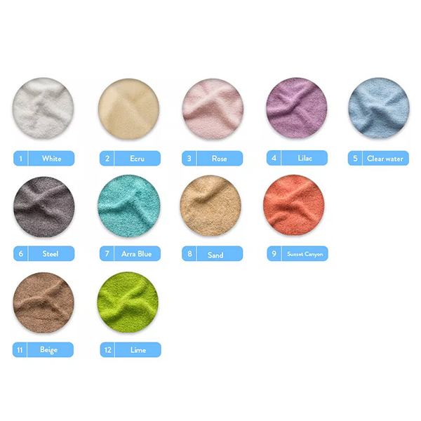 kolory: White, Ecru, Rose, Lilac, Clear water, Steel, Arra Blue, Sand, Sunset Canyon, Beige, Lime