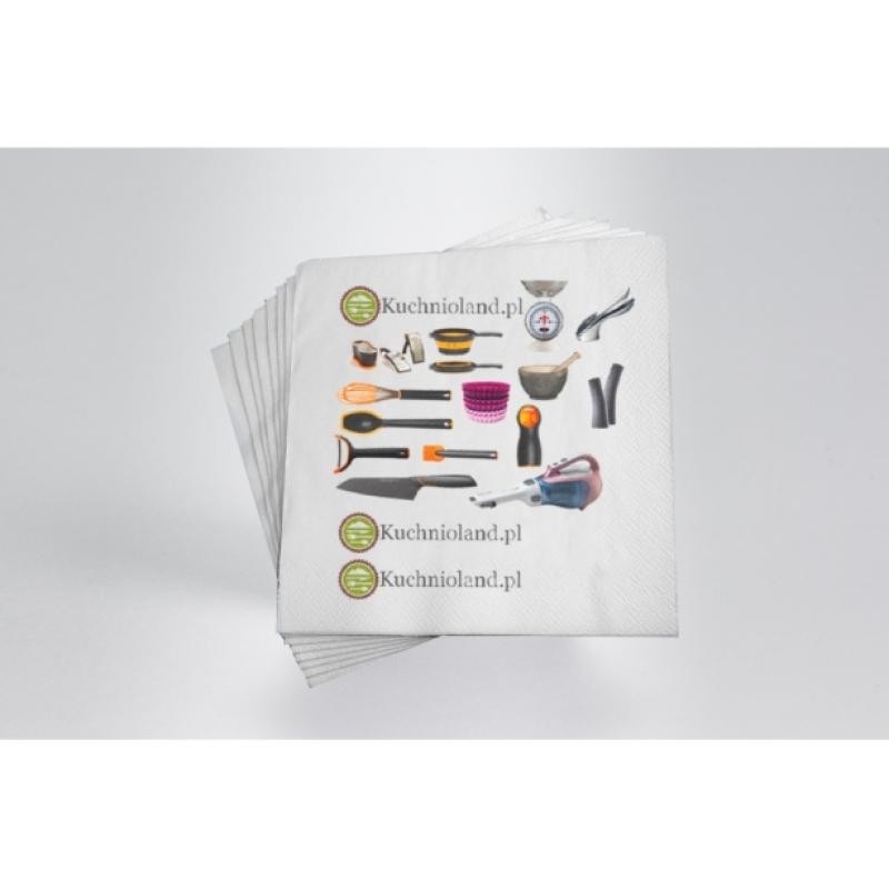 Serwetki reklamowe z kolorowym nadrukiem cyfrowym na powierzchni max. 7x7 cm. Termin realizacji od 4 do 7 dni, a minimalna wielość zamówienia to 200 szt.