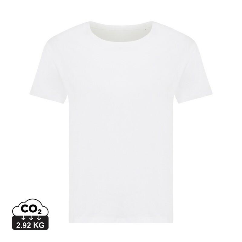 Koszulka damska, regularny krój, okrągły dekolt, krótkie rękawy, wykonana w 30% z bawełny z recyklingu i w 70% z bawełny organicznej o gramaturze 160 g/m2, posiada wbudowany znacznik AWARE™, który potwierdza wykorzystanie materiałów z recyklingu, posiada kod QR na metce, który prowadzi do cyfrowego paszportu produktu, 2% wpływów z każdego sprzedanego produktu z kolekcji Impact jest przekazywane na rzecz Water.org, ślad węglowy produktu: 2,92 kg CO2