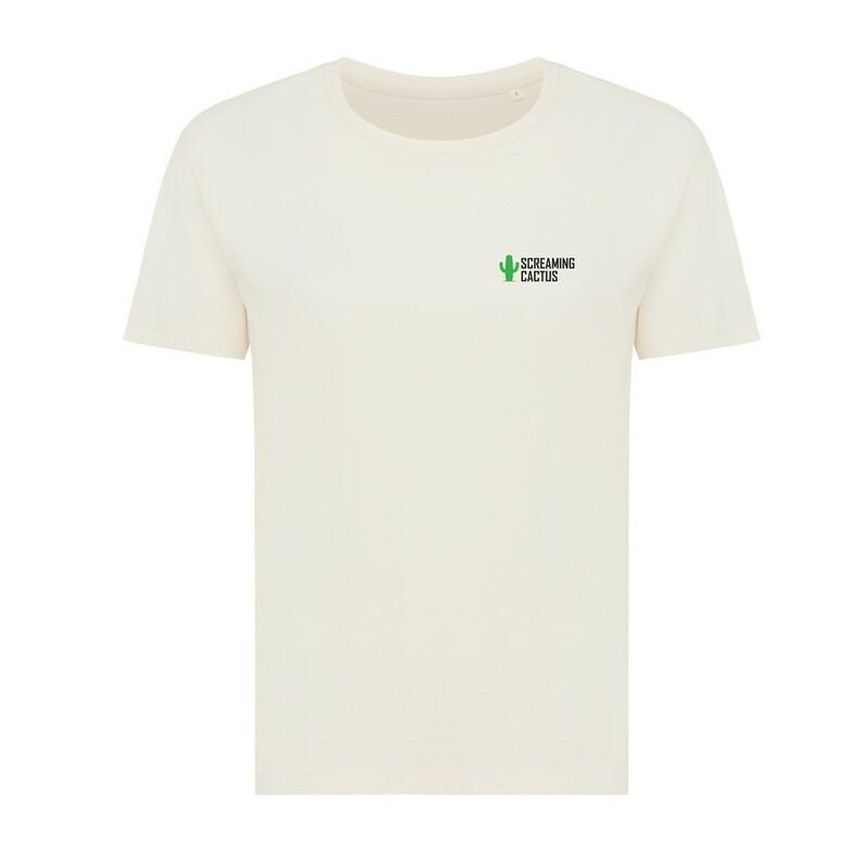 Koszulka damska, regularny krój, okrągły dekolt, krótkie rękawy, wykonana w 30% z bawełny z recyklingu i w 70% z bawełny organicznej o gramaturze 160 g/m2, posiada wbudowany znacznik AWARE™, który potwierdza wykorzystanie materiałów z recyklingu, posiada kod QR na metce, który prowadzi do cyfrowego paszportu produktu, 2% wpływów z każdego sprzedanego produktu z kolekcji Impact jest przekazywane na rzecz Water.org, ślad węglowy produktu: 2,85 kg CO2