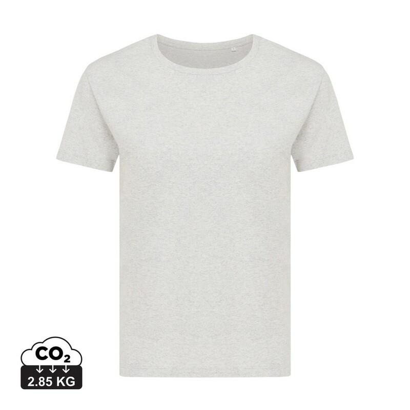 Koszulka damska, regularny krój, okrągły dekolt, krótkie rękawy, wykonana w 30% z bawełny z recyklingu i w 70% z bawełny organicznej o gramaturze 160 g/m2, posiada wbudowany znacznik AWARE™, który potwierdza wykorzystanie materiałów z recyklingu, posiada kod QR na metce, który prowadzi do cyfrowego paszportu produktu, 2% wpływów z każdego sprzedanego produktu z kolekcji Impact jest przekazywane na rzecz Water.org, ślad węglowy produktu: 2,85 kg CO2
