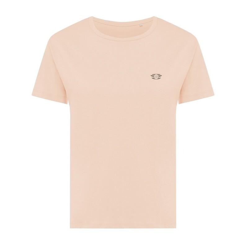 Koszulka damska, regularny krój, okrągły dekolt, krótkie rękawy, wykonana w 30% z bawełny z recyklingu i w 70% z bawełny organicznej o gramaturze 160 g/m2, posiada wbudowany znacznik AWARE™, który potwierdza wykorzystanie materiałów z recyklingu, posiada kod QR na metce, który prowadzi do cyfrowego paszportu produktu, 2% wpływów z każdego sprzedanego produktu z kolekcji Impact jest przekazywane na rzecz Water.org, ślad węglowy produktu: 3,14 kg CO2