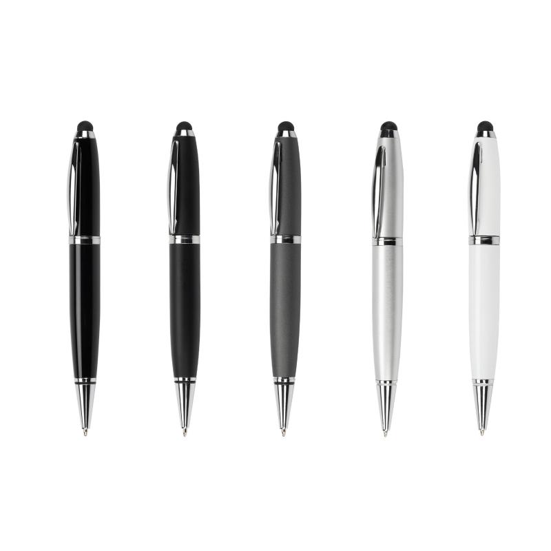 Model ten to eleganckie połączenie długopisu, gumki do ekranów dotykowych oraz pendrive’a.