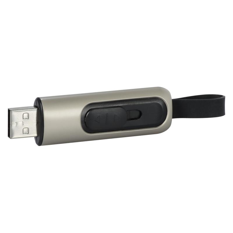 Oryginalny model pamięci z wysuwaną kością USB i praktycznym, silikonowym uchwytem. Solidna, wykonana z metalu obudowa charakteryzuje się dużą powierzchnią przeznaczoną do znakowania. Satynowa powierzchnia obudowy w atrakcyjny sposób wyeksponuje zamieszczone logo.