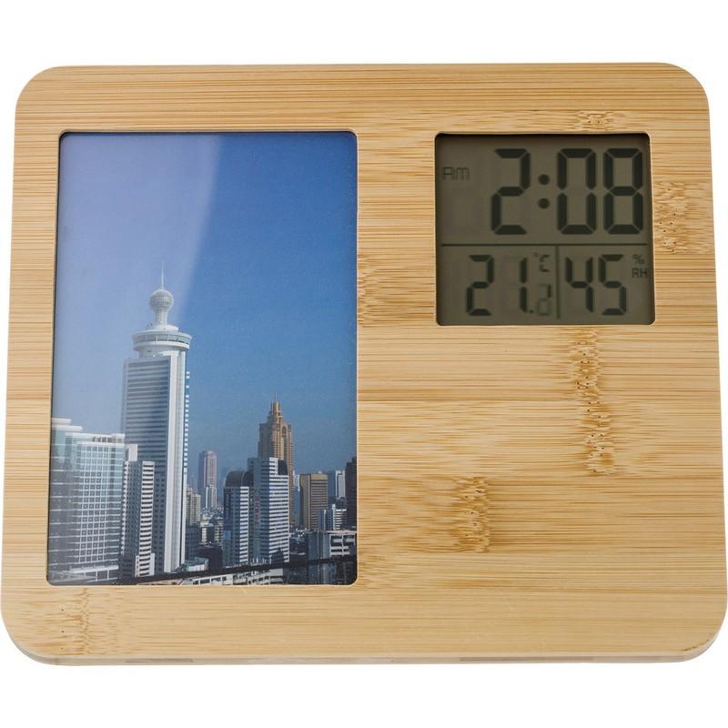 Bambusowa stacja pogodowa, ramka do zdjęć, funkcje: zegar, temperatura, wilgotność powietrza