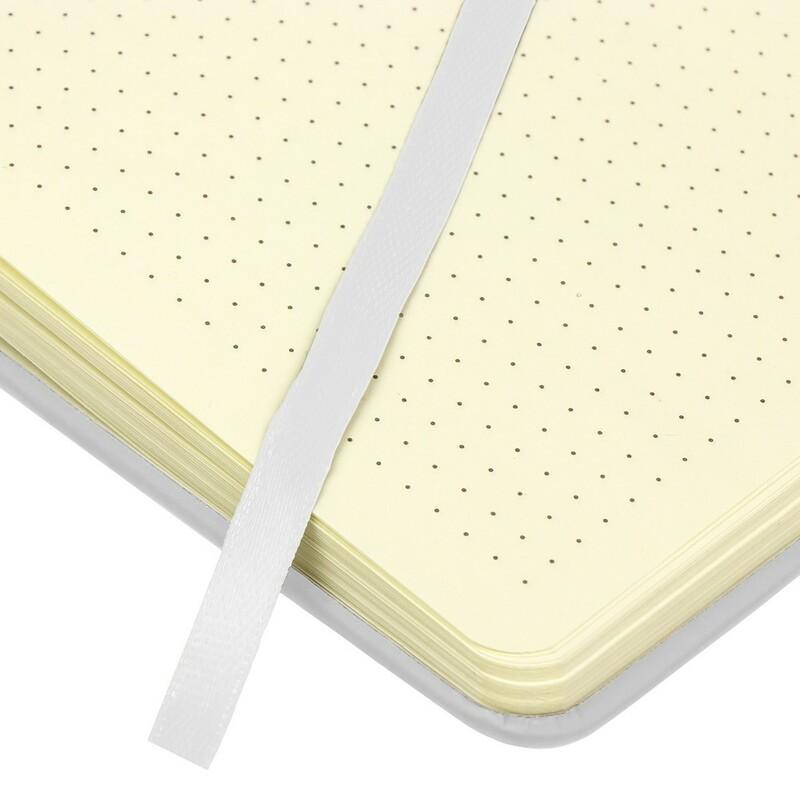 Notatnik A5 (96 kropkowanych kartek), tasiemka zakładkowa i elastyczna opaska do zamykania