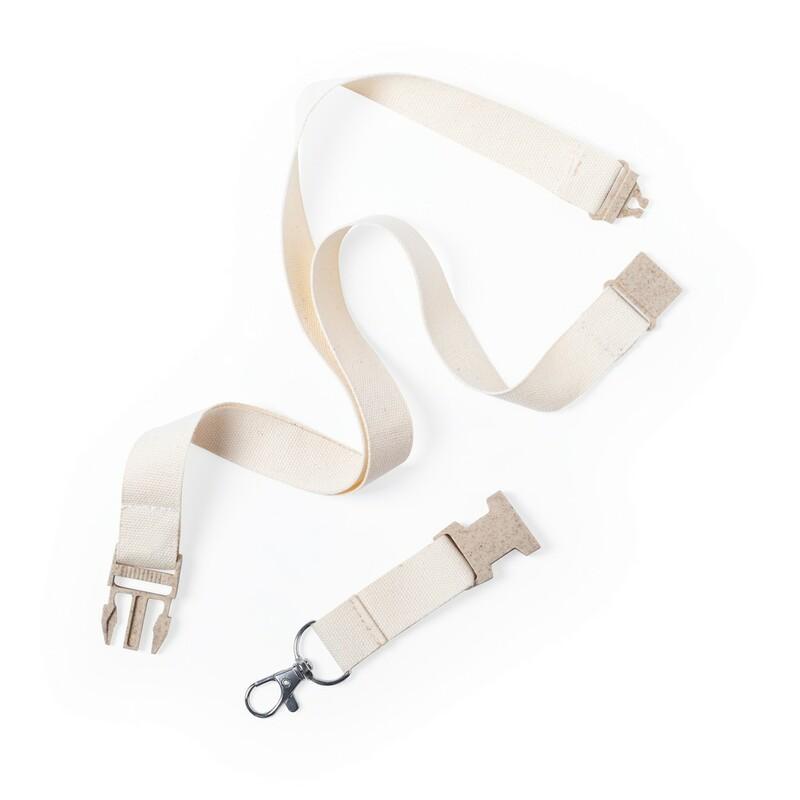 Smycz reklamowa z bezpiecznym zapięciem, wykonana z bawełny, włókien słomy pszenicznej i PP