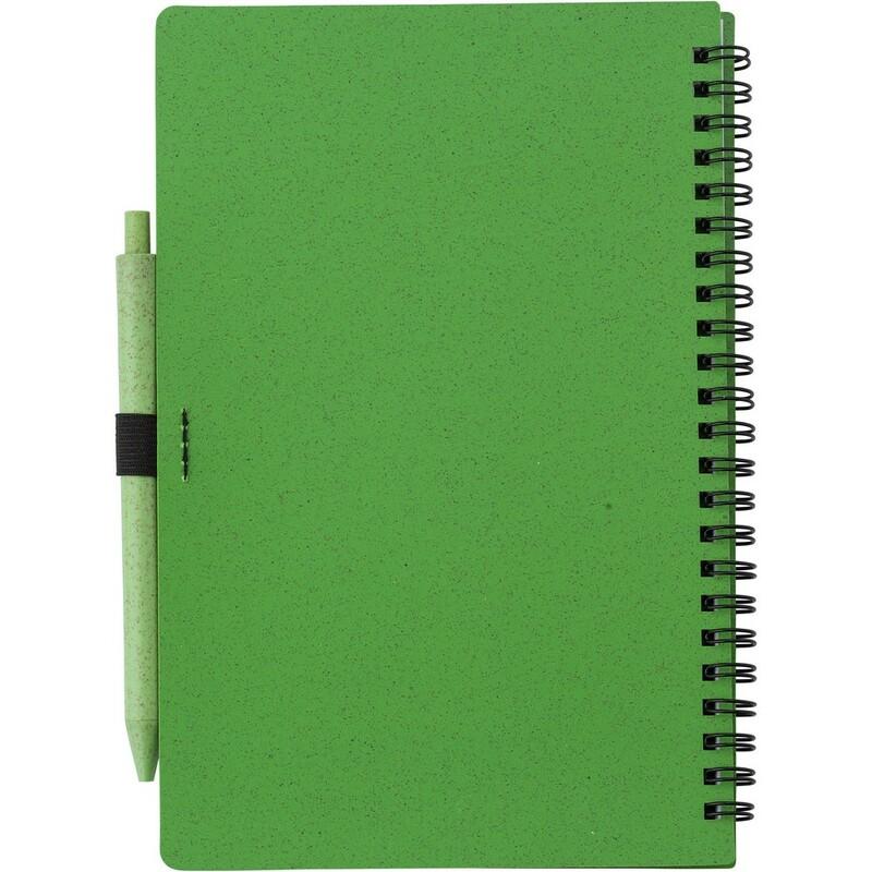 Notatnik ok. A5 (70 kartek w linie), okładka ze słomy pszenicznej i PP, długopis ze słomy pszenicznej, spiralne bindowanie