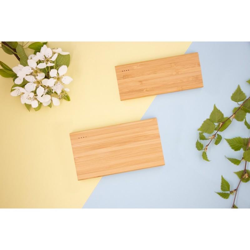 Bambusowy power bank B'RIGHT 8000 mAh, 4 diody wskazujące poziom naładowania, wejście micro USB 5V/2A, 9V/2A, 12V/1.5A oraz USB typu C, wyjście USB 3.0 5V/3A,9V/2A, 12V/1.5A oraz USB typu C 5V/3A, 9V/2A, 12V/1.5A do ładowania dwóch urządzeń jednocześnie, kabel micro USB oraz USB typ C w komplecie