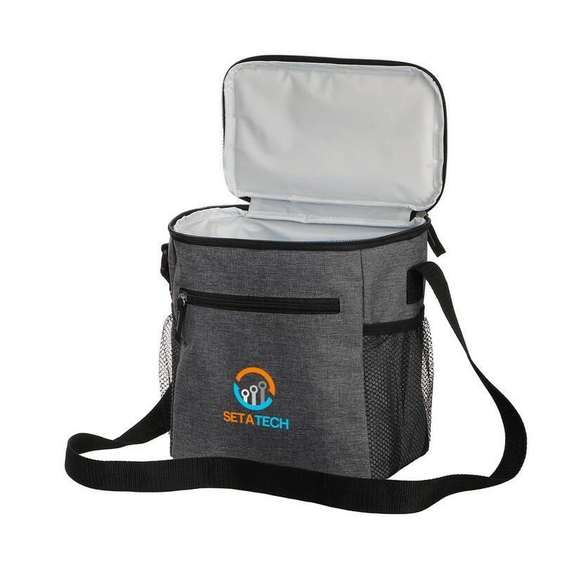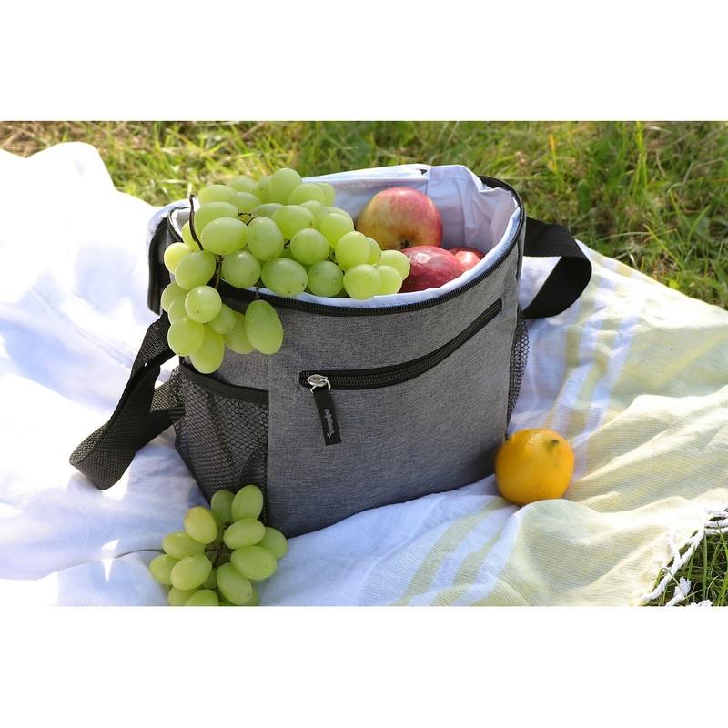 Torba termoizolacyjna, komora główna i przednia kieszeń zamykane na zamek błyskawiczny, 2 boczne kieszenie siateczkowe, rączka do noszenia oraz regulowany pasek na ramię
