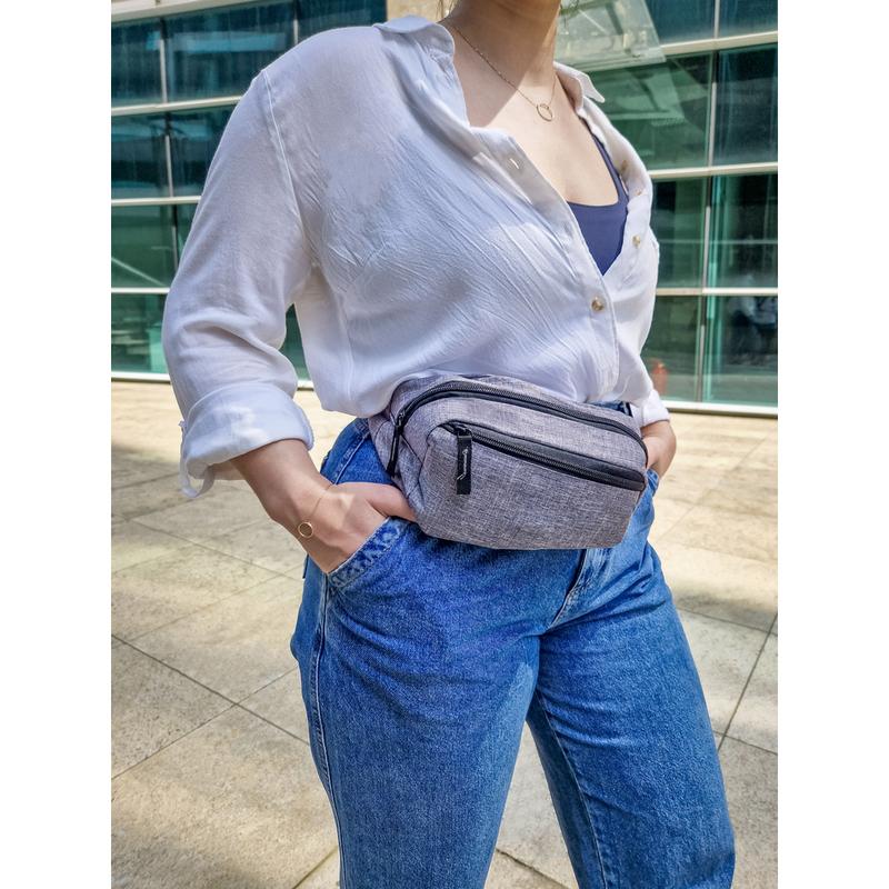 Saszetka zapinana w pasie B'RIGHT, wykonana z rPET, przegroda główna oraz przednia na zamek błyskawiczny, szeroki i regulowany pas biodrowy, solidna klamra