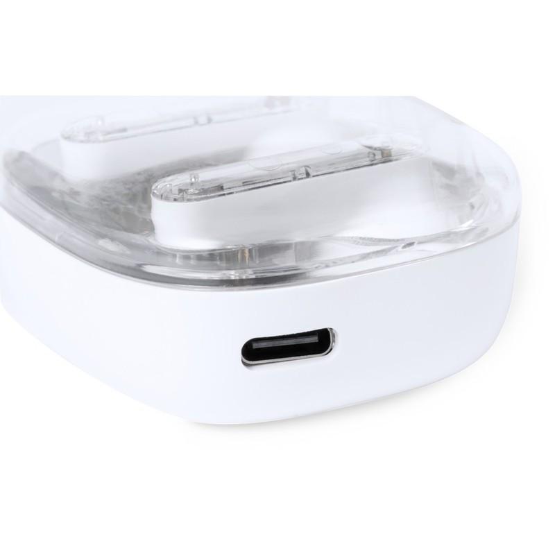 Słuchawki bezprzewodowe BT 5.3, douszne, bateria stacji ładującej 200 mAh, bateria słuchawek 30 mAh, funkcja odbierania połączeń, wbudowany mikrofon, czas pracy: ok. 3-4h, zasięg do 10 m, kabel USB typu C w komplecie