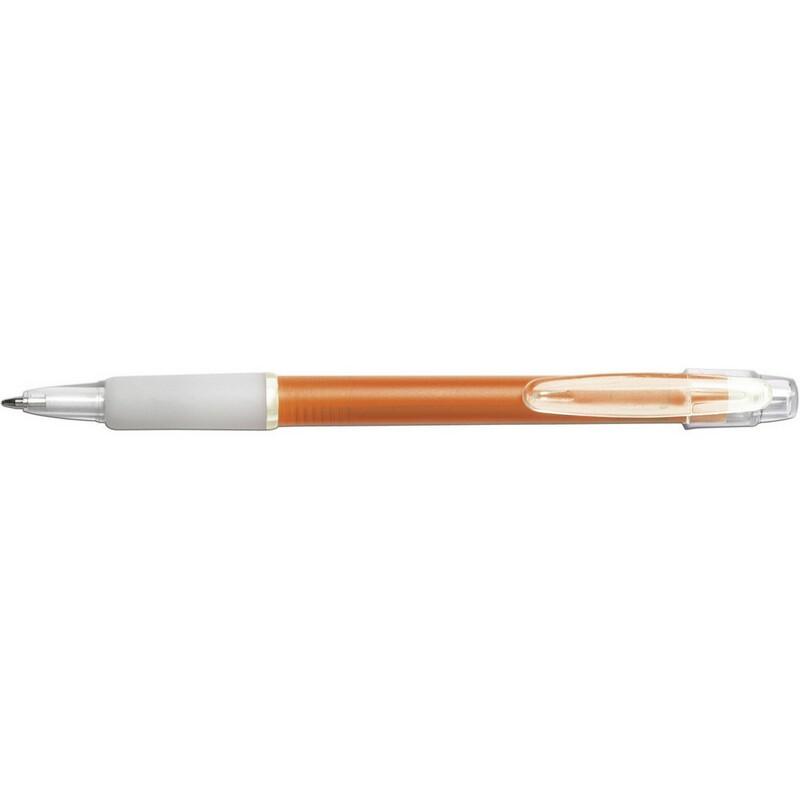 Długopis z gumowym uchwytem, kolorowym trzonem i półprzezroczystym klipem