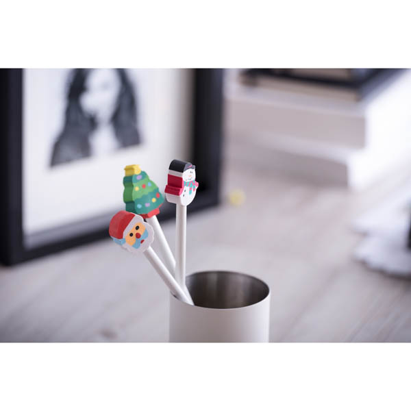 Ołówek z gumką w kształcie świątecznego motywu (02-bałwanek, 05-Święty Mikołaj, 06-choinka), nienaostrzony