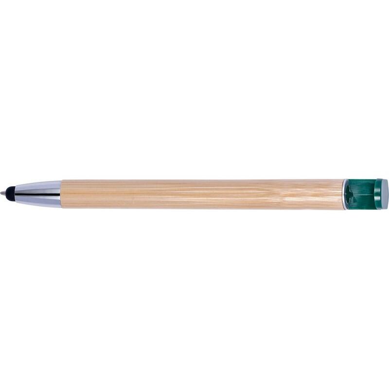 Długopis, touch pen, specjalny klip może służyć jako stojak na telefon, bambusowy trzon, kolorowe plastikowe elementy korpusu