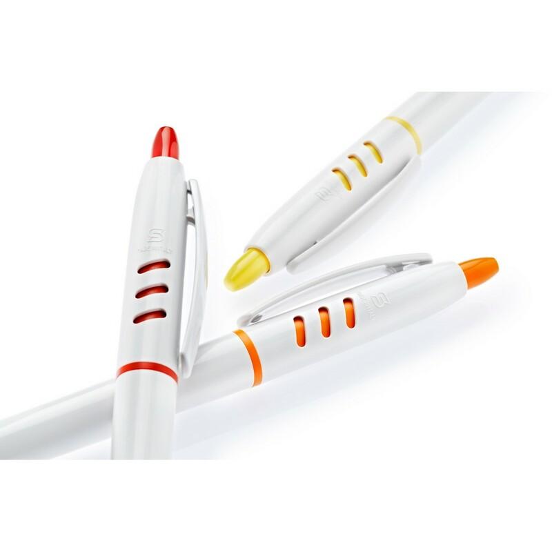 Długopis Stilolinea S30, biały trzon, kolorowe akcenty, wkład w niebieskim kolorze, zawiera tusz German Dokumental Ink, produkt wykonany z ABS, plastiku, niklu i metalu