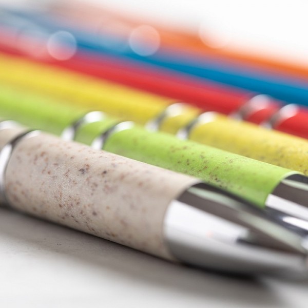 Długopis z włókien słomy pszenicznej, metalowym klipem i srebrnymi elementami