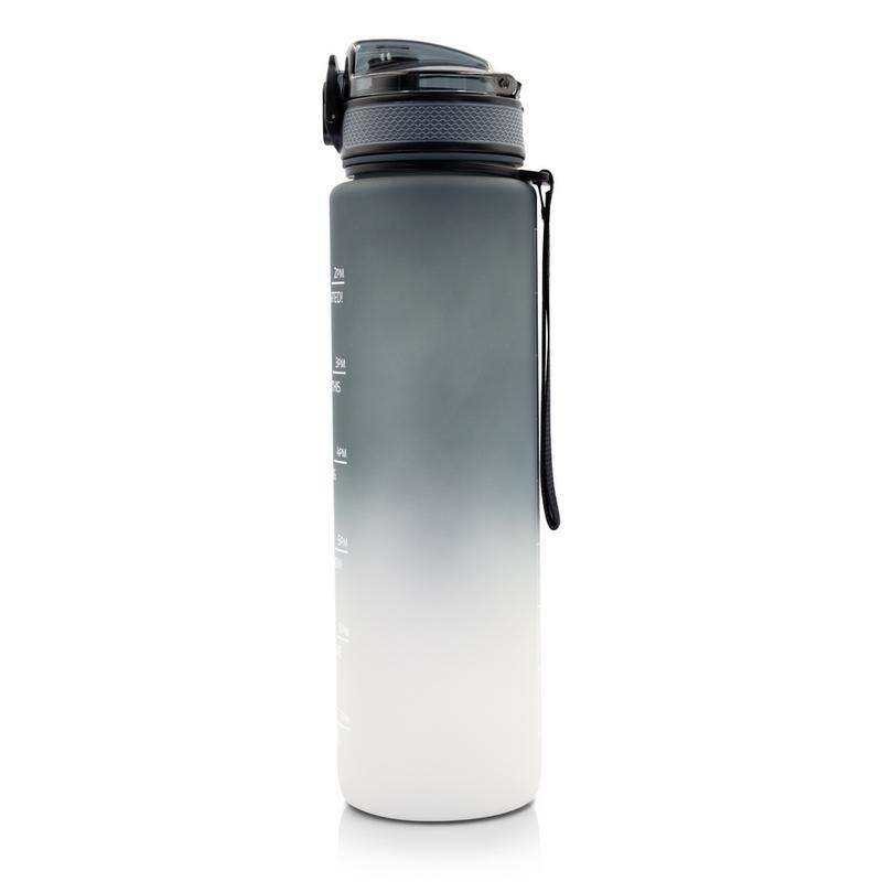 Butelka sportowa 1000 ml Air Gifts, skala ml z jednej strony i miarka motywacyjna z drugiej strony, zamknięcie z blokadą, pasek na rękę (pakowany oddzielnie), gumowane wykończenie, przeznaczona wyłącznie do zimnych i niegazowanych napojów
