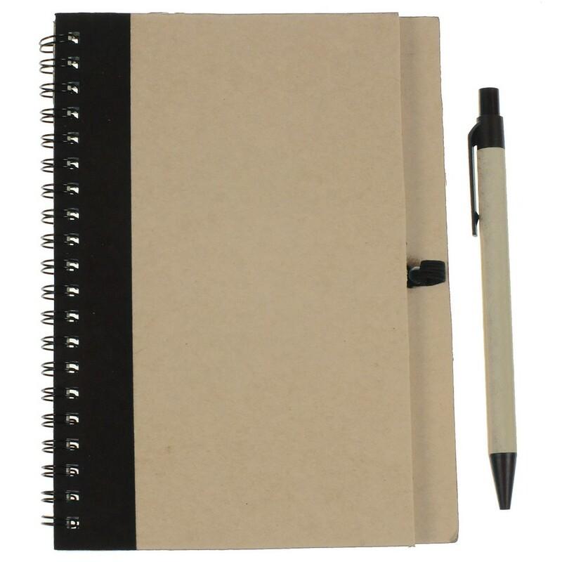 Ekologiczny notatnik (ok. A5, ok. 60 kartek w linie), dołączony biodegradowalny długopis, spiralne bindowanie
