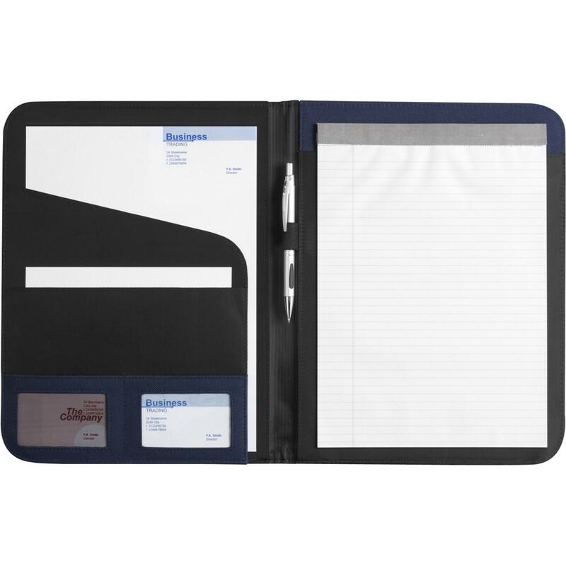 Teczka konferencyjna A4 z notatnikiem (30 kartek w linie), 2 duże kieszenie wewnętrzne, 2 kieszenie na wizytówki, miejsce na przybory do pisania (nie dołączone)