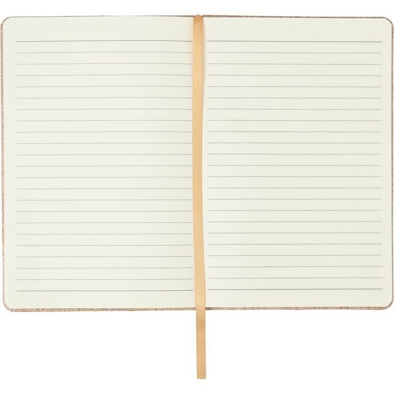 Notatnik (ok. A5, 96 kartek w linie), okładka PU z korkowym wzorem, elastyczna opaska do zamykania oraz tasiemka zakładkowa