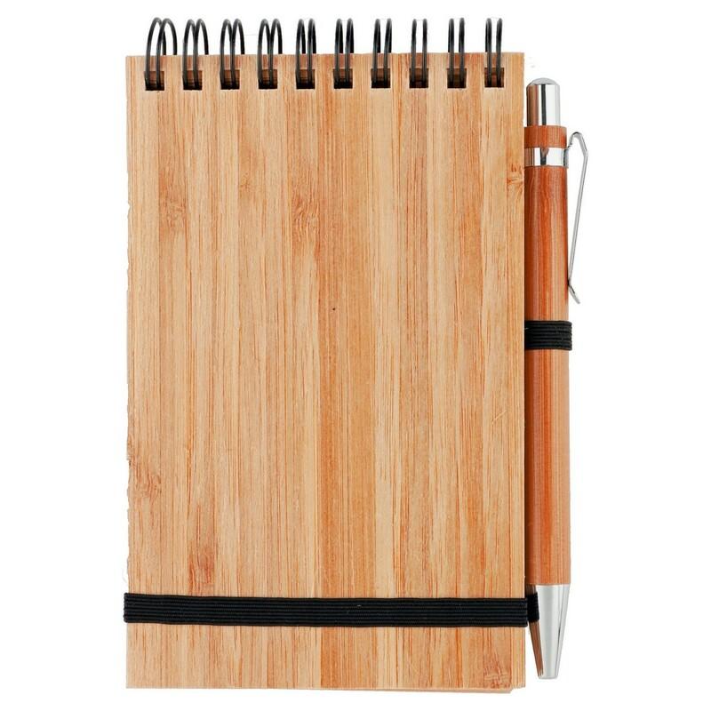 Notatnik bambusowy A6 (70 kartek w linie), twarda okładka, długopis z bambusowym trzonem i srebrnymi elementami w komplecie