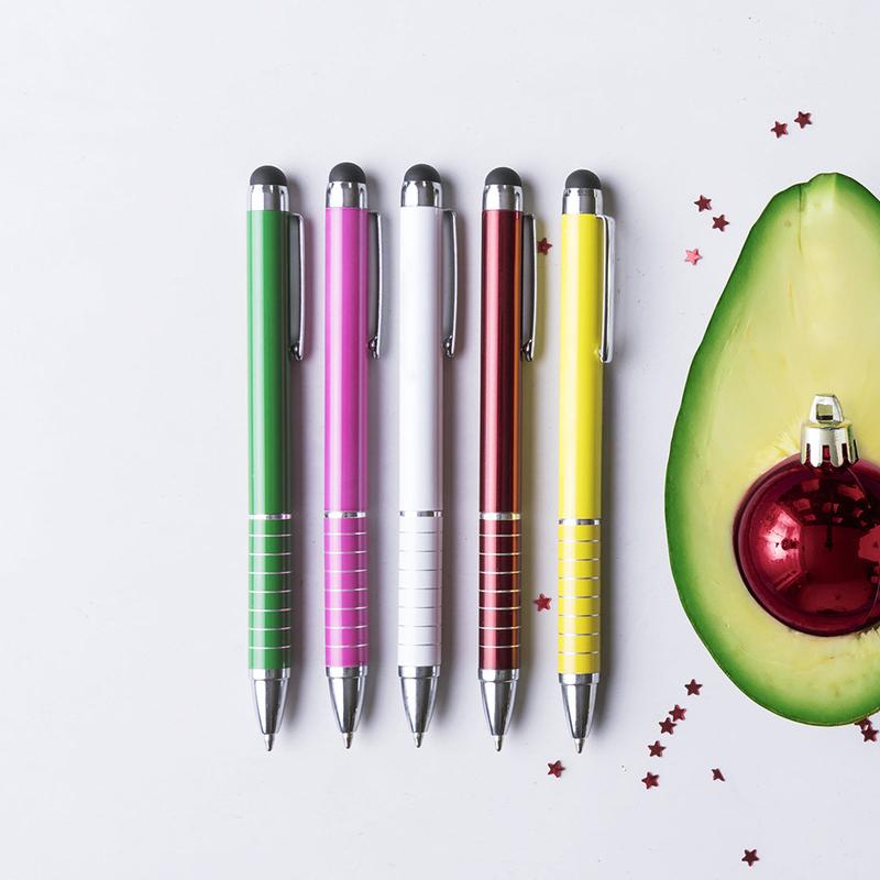 Długopis, touch pen z czarną gumową końcówką, kolorowym trzonem i srebrnymi elementami