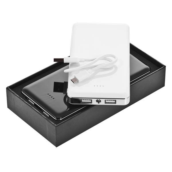 Power bank 12000 mAh z lampką i 4 diodami wskazującymi poziom naładowania, wejście 5V/1A, wyjście 5V/1A/2A, w komplecie kabel micro USB