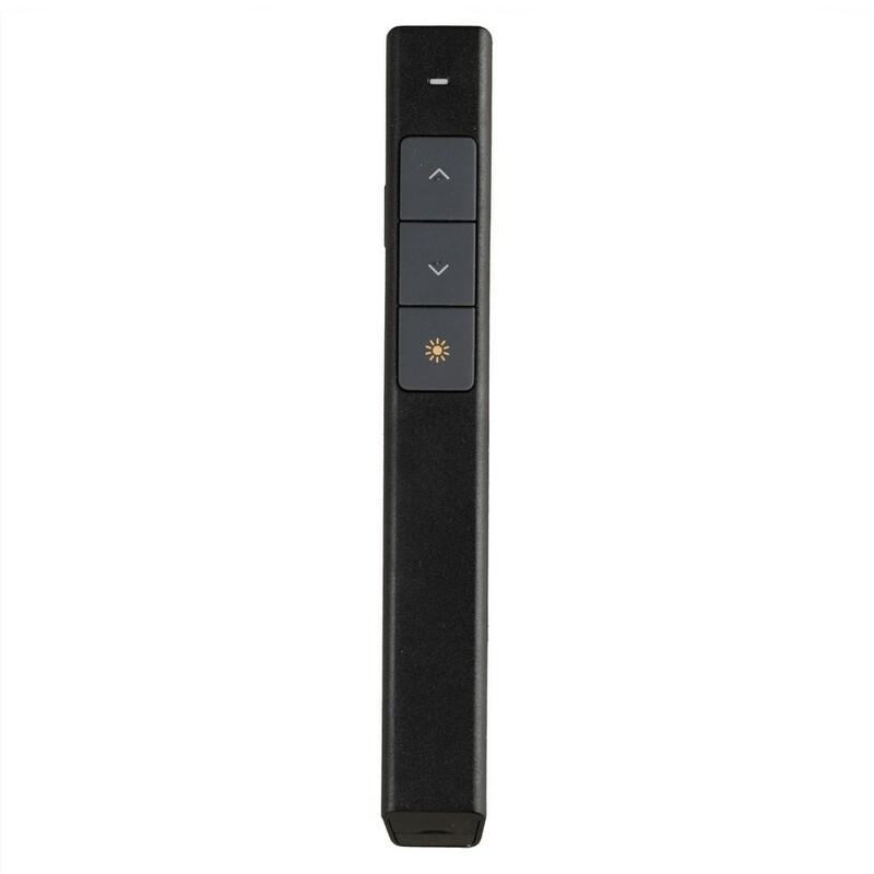Bezprzewodowy wskaźnik laserowy 1 LED, posiada przyciski poprzedni/następny do przełączania slajdów prezentacji, odbiornik USB w komplecie, w pudełku podarunkowym