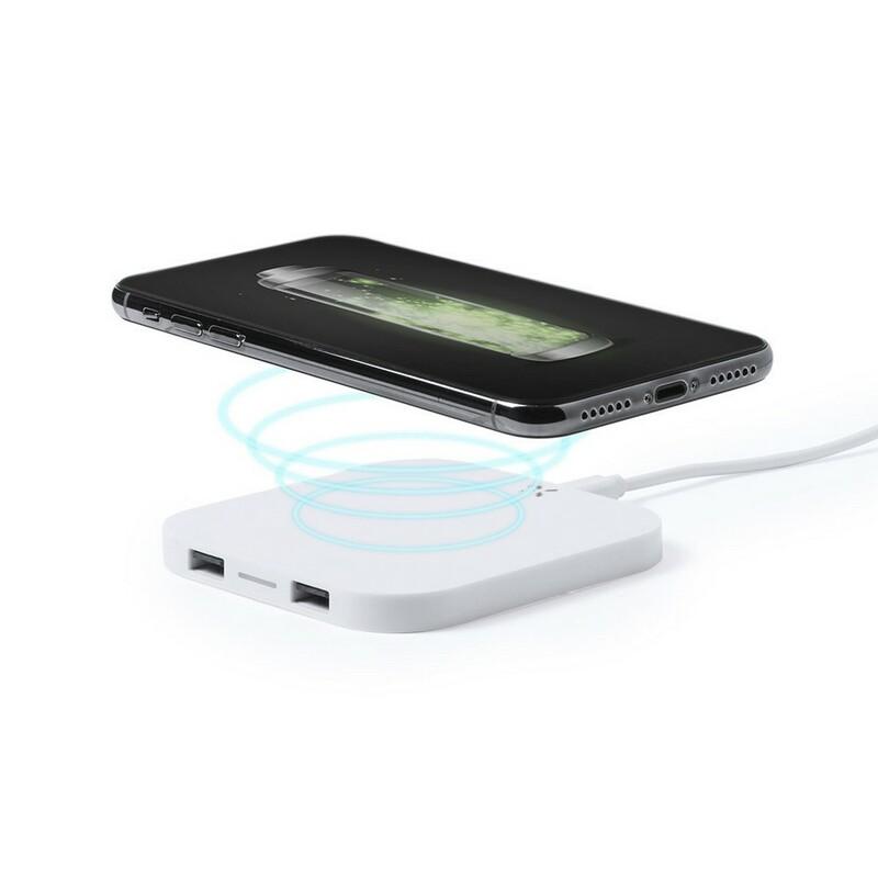 Ładowarka bezprzewodowa 5W, 2 wyjścia USB, wejście 5V/2A, napięcie ładowania 5V/1A, działa z telefonami posiadającymi możliwość ładowania indukcyjnego, kabel micro USB w komplecie