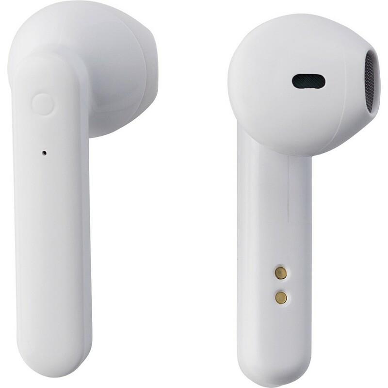 Bezprzewodowe słuchawki douszne, bambusowe etui, kabel ładujący w komplecie