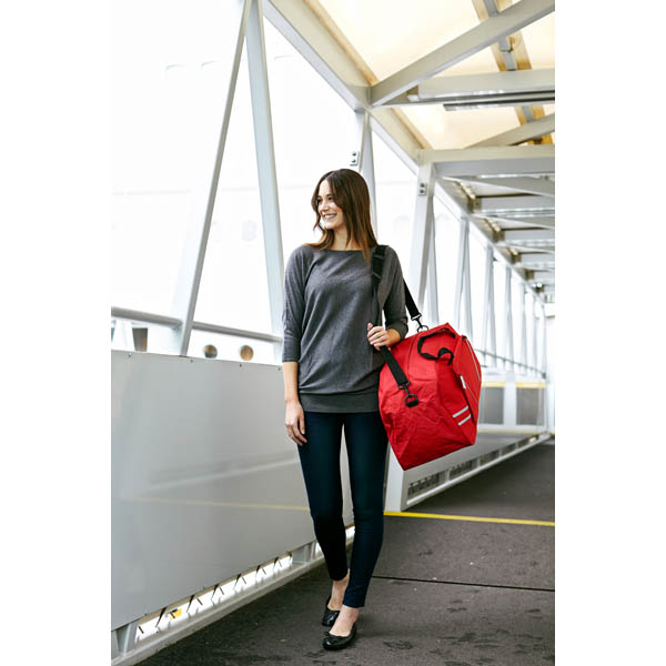 Torba sportowa, podróżna z dużą kieszenią przednią i odblaskowymi paskami, regulowany pasek na ramię