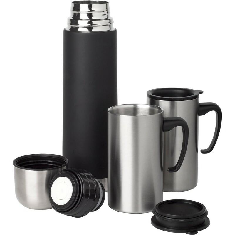 Zestaw podróżny, termos 500 ml z podwójnymi ściankami i 2 kubki 260 ml, w pokrowcu z paskiem na ramię