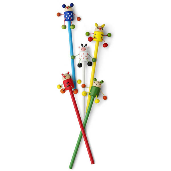 Ołówek nienaostrzony, mix wzorów: tygrys, biedronka, mysz, żaba i krowa