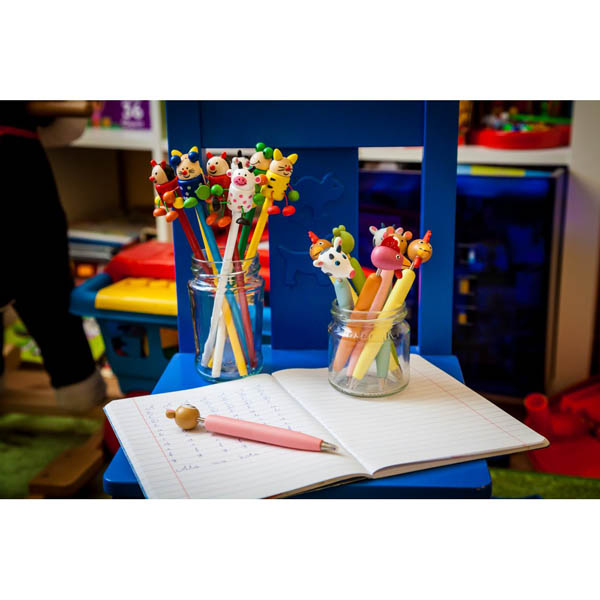 Ołówek nienaostrzony, mix wzorów: tygrys, biedronka, mysz, żaba i krowa