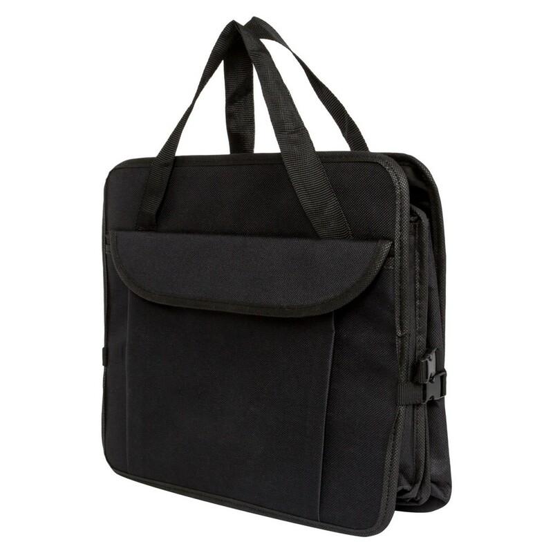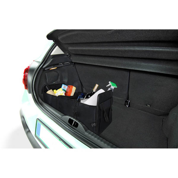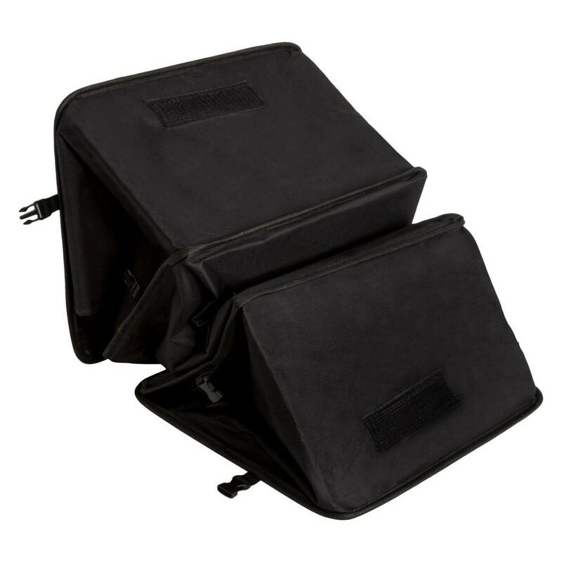 Składany organizer samochodowy z 2 dużymi przegrodami, przegrodą termoizolacyjną zamykaną na zamek błyskawiczny, 2 bocznymi kieszeniami na rzep oraz 2 rzepami na spodzie