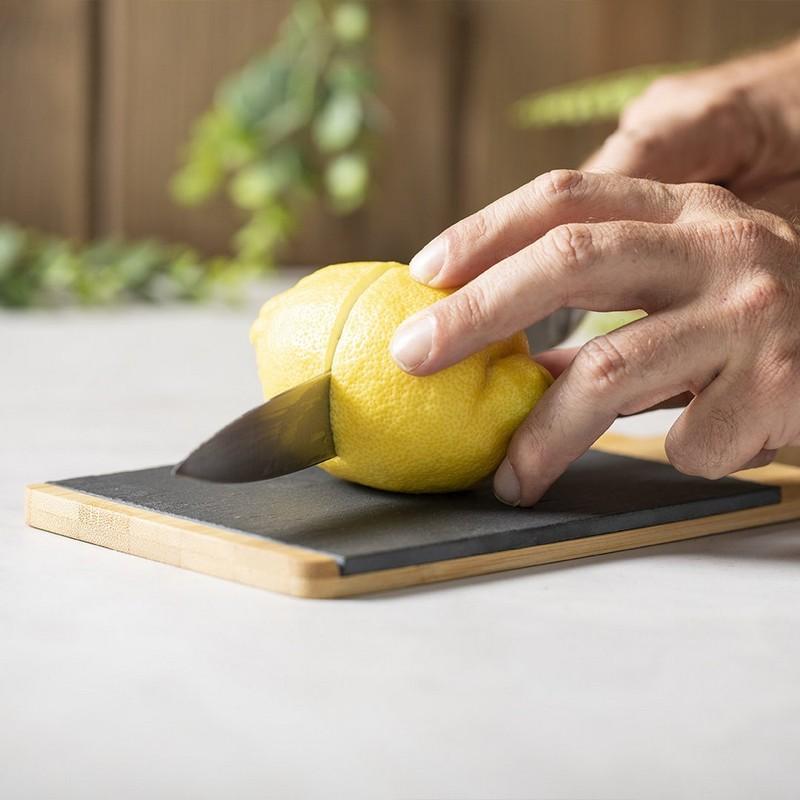 Deska do krojenia wykonana z łupka i bambusa, wyciągany element z łupka dla łatwiejszego czyszczenia