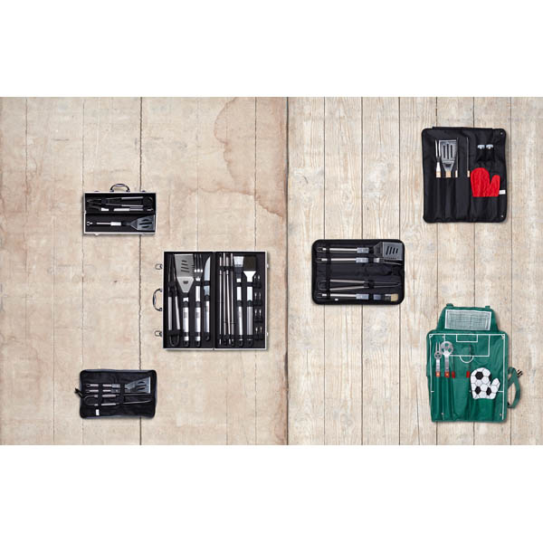 Zestaw do grilla, 4 elementy, pokrowiec na zamek z rączką, pędzel, szczypce, widelec oraz łopatka
