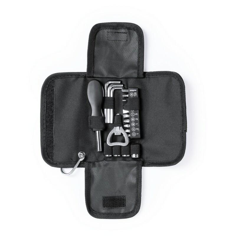 Zestaw narzędzi, 16 el., w zestawie śrubokręt z kilkoma końcówkami, 3 klucze imbusowe, w etui z karabińczykiem
