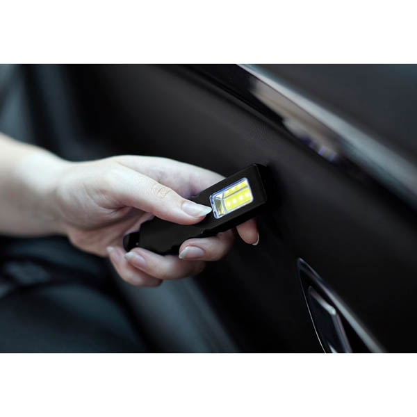 Latarka bezpieczeństwa 4 COB LED (światło stałe i migające), przecinak do pasów bezpieczeństwa, młotek bezpieczeństwa, magnes