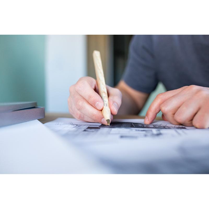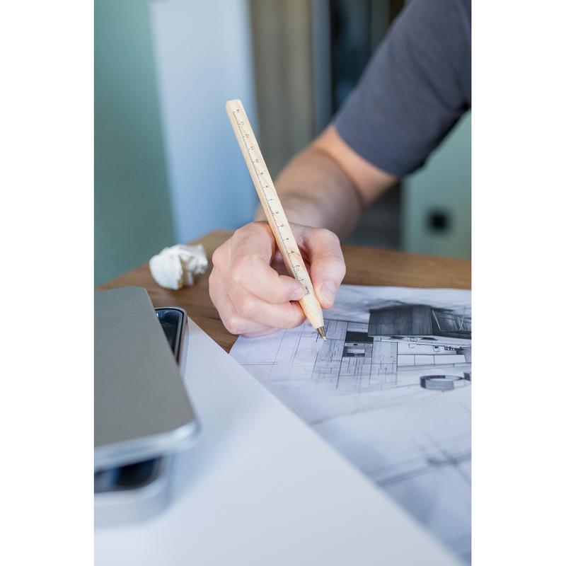 Długopis z trzonem o przekroju kwadratowym, trzon może posłużyć za linijkę, wkład w niebieskim kolorze, produkt wykonany z drewna