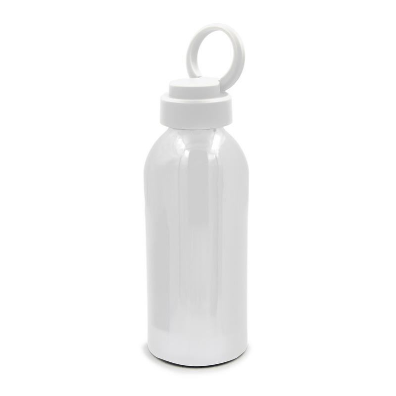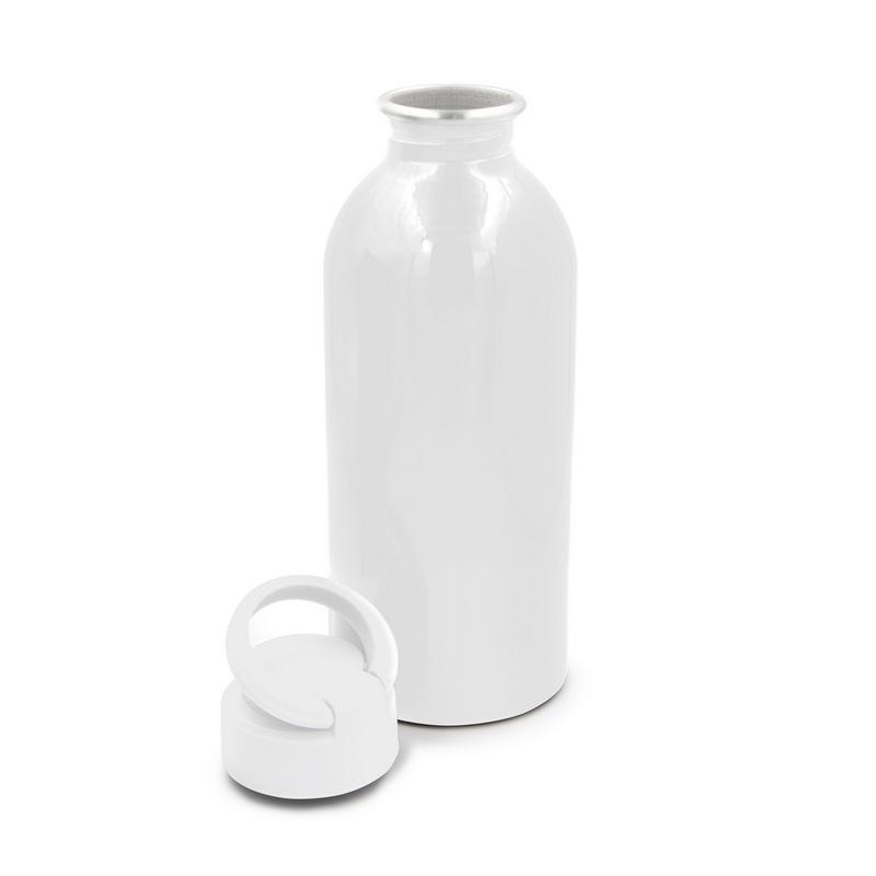 Butelka sportowa 585 ml, posiada plastikową zakrętkę ze składanym uchwytem ułatwiającym noszenie, zalecana wyłącznie do zimnej wody, produkt wykonany z aluminium