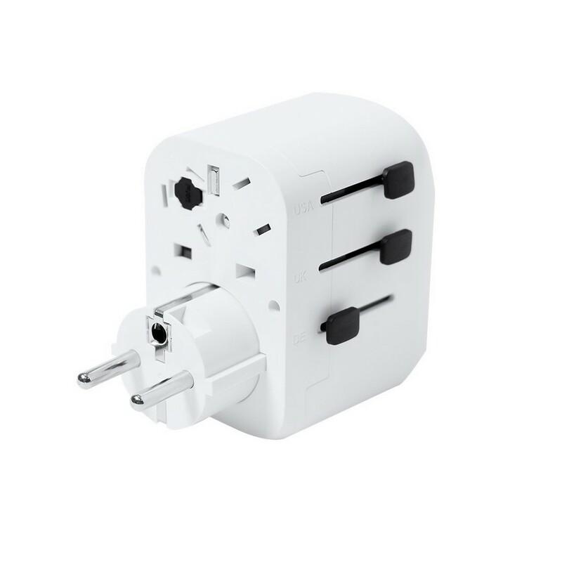 Adapter podróżny z wyjściem USB i USB-C,wtyczki z: USA, Europy, Azji, UK i Australii, produkt wykonany z ABS