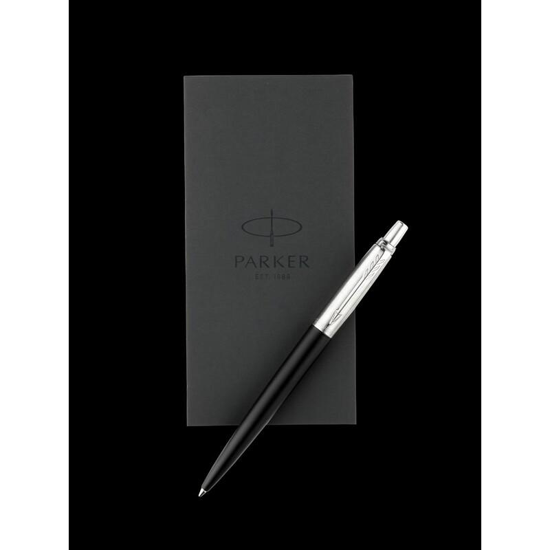Długopis Parker Jotter Core, wkład w niebieskim kolorze, zapakowany w pudełko upominkowe, produkt wykonany z metalu i stali nierdzewnej